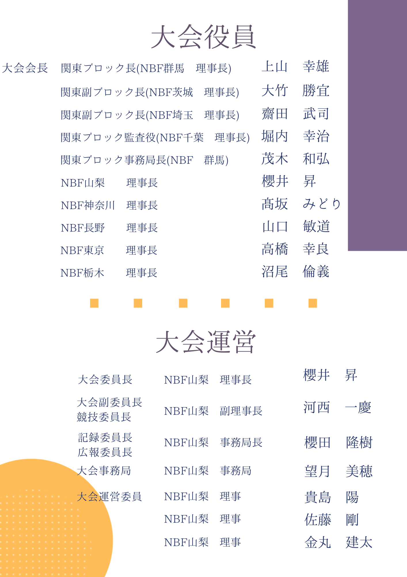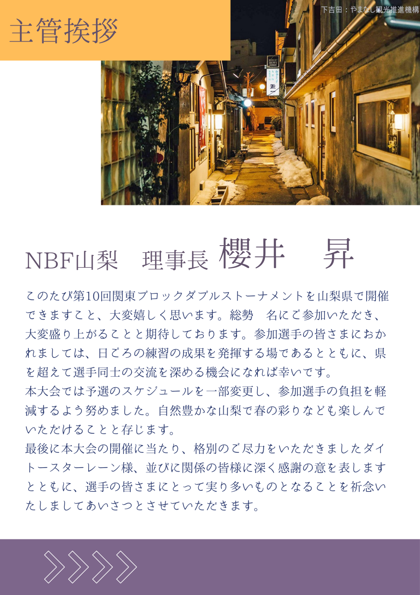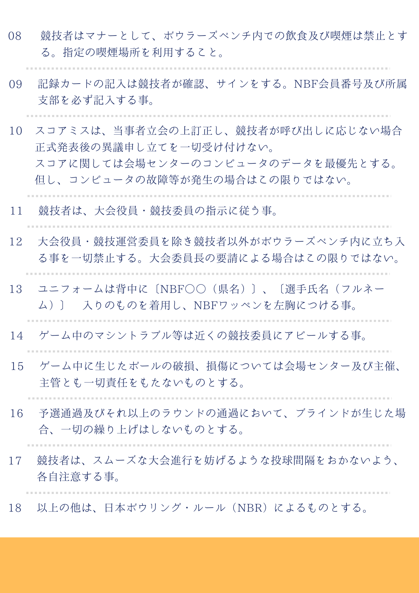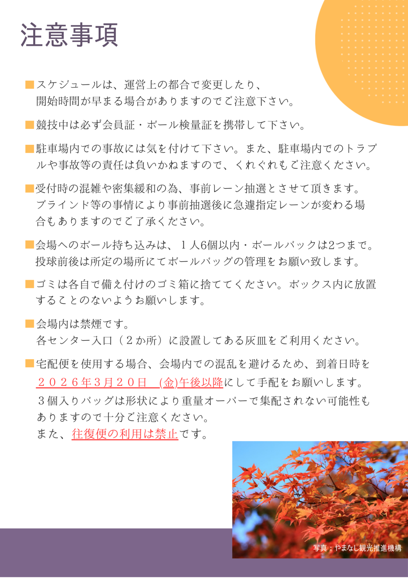 第10回関東ブロックダブルストーナメント 開催日 2026.03.21~22 会場 ダイトースターレーン [3.19]第10回関東ブロック ダブルストーナメントダウンロード 結果速報ページはこちら 主管あいさつ・役員紹介+ スケジュール+ 競技規定・ルール・注意事項+ レーンコンディション+ 選手一覧+ NBF+ 投稿日 : 26.03.04 カテゴリー : 山梨県連競技日程